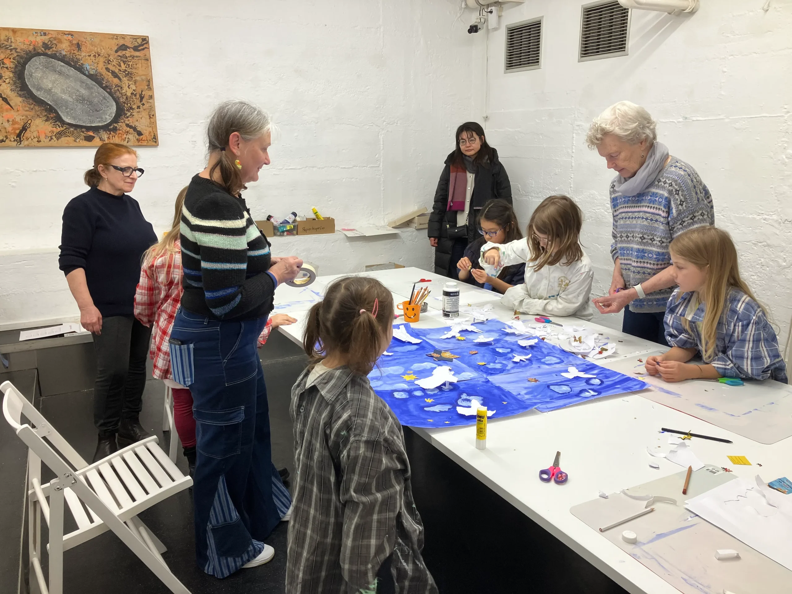 Die Malschulkinder und Malbegleiter:innen freuen sich über regen Besuch.