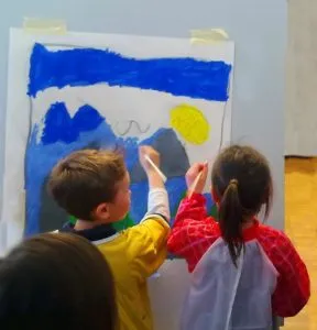 Unsere Arbeit als ehrenamtliche Malbegleiter:innen besteht darin, den Kindern den nötigen Entfaltungsraum zur Verfügung zu stellen: Material anbieten und erklären, erprobte Vorgehensweisen vorschlagen und Hilfestellung geben, Motive und Ideen suchen, ausdenken und das Bild organisieren. Wir strukturieren den Malraum und die Zeit, verwahren die entstandenen Bilder über das Schuljahr und sorgen für eine öffentliche Ausstellung der Arbeiten, um sie Familien und Freunden zu zeigen.